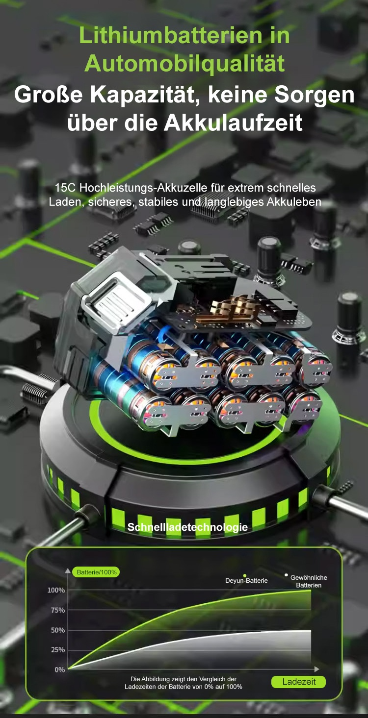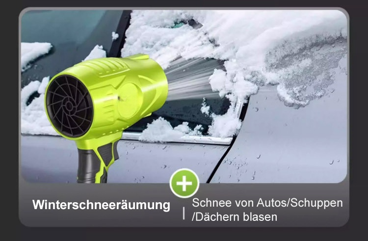 Beseitigen Sie innerhalb von 5 Minuten 200 Quadratmeter Laub und innerhalb von 3 Minuten Schnee von Fahrzeugen.